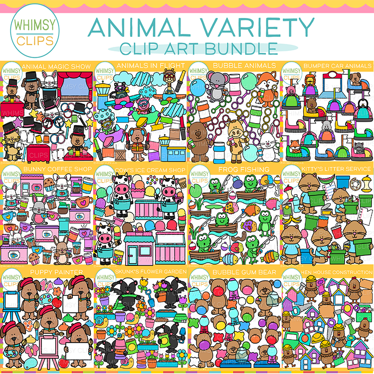 Create fun and engaging activities, games, and more with the fun thematic animal clip art sets included in this bundle.
