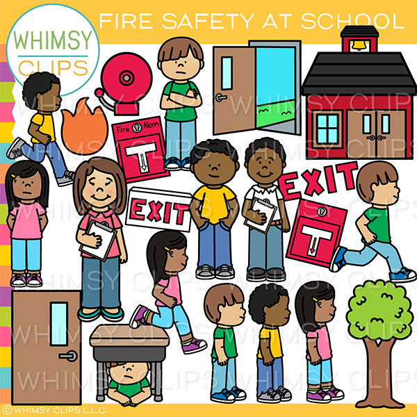 Teach basic fire safety procedures and fire drill procedures at school. This set contains 40 high quality 300dpi transparent png images, which includes 20 color images and 20 black & white images.
