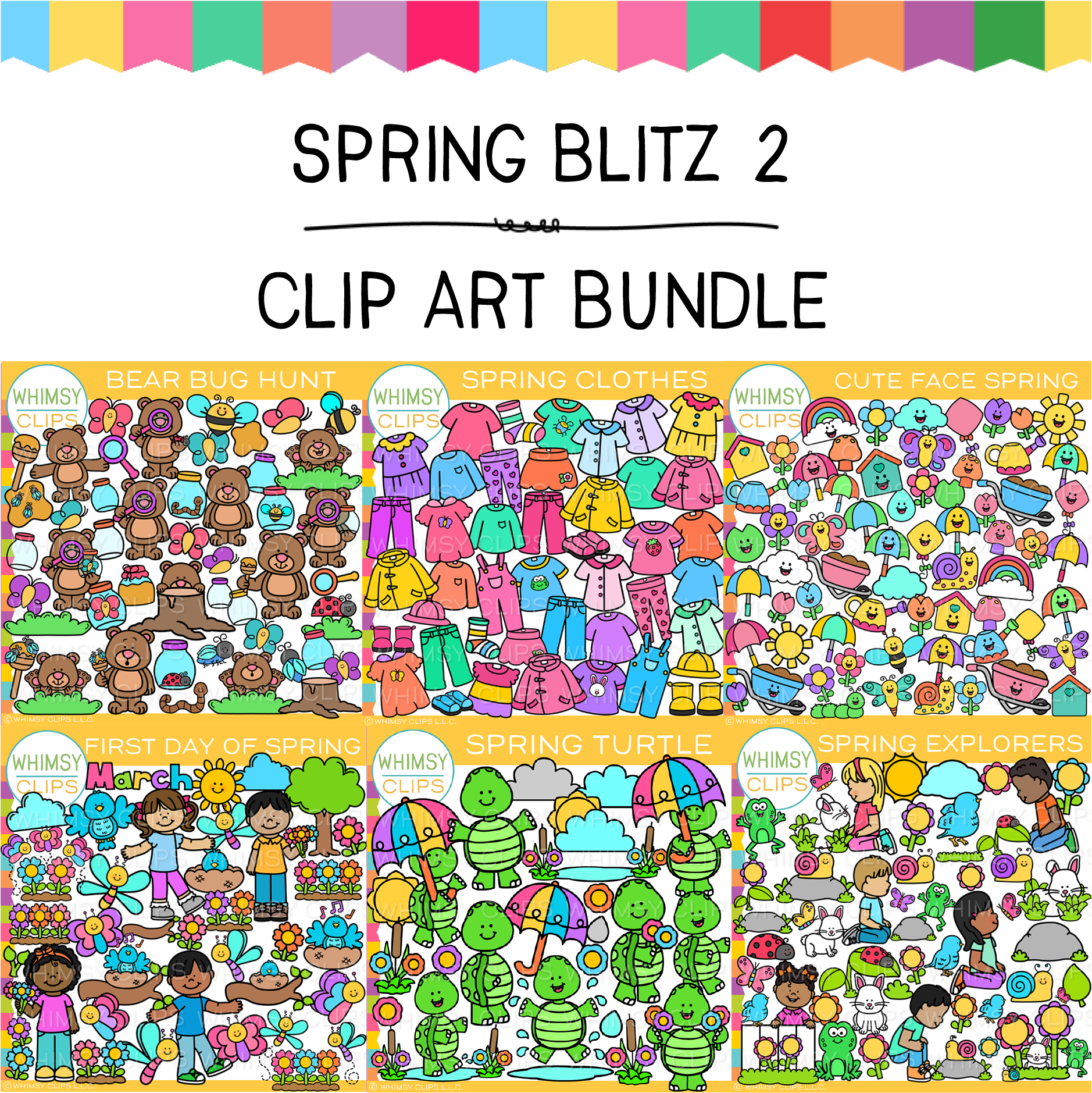 The Whimsy Clips Spring Clip Art Blitz 2 clip art bundle is a fun little spring bundle contains 6 mini spring clip art sets. All images will come in both color and black & white 300dpi transparent images.