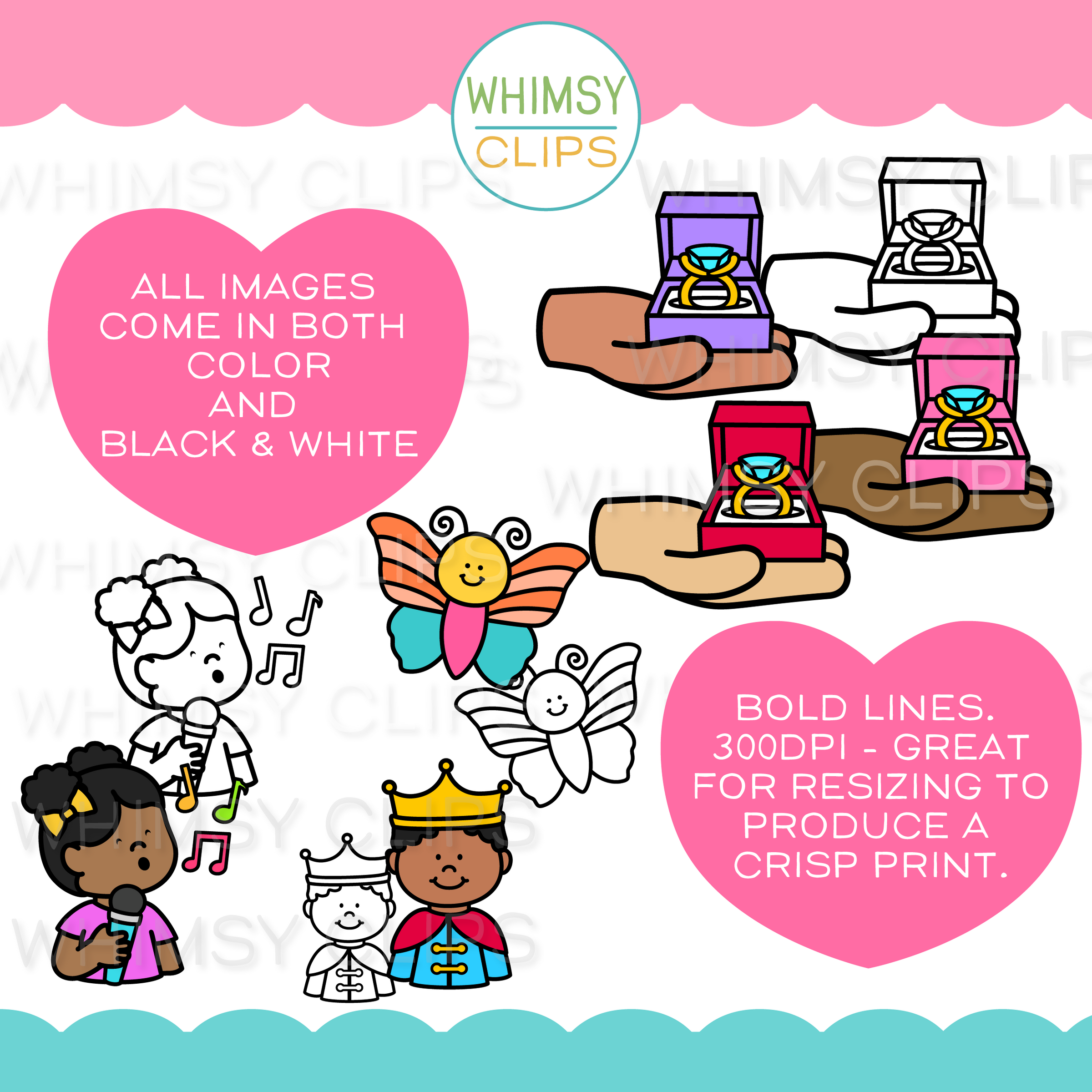 All images are transparent 300dpi png and come in both color and black & white. 300 dpi is the industry standard for printing. DPI means each image is made up of 300 dots per inch, so technically, if you size up or down, there are enough dots in each image to still produce a nice crisp print while retaining quality.
