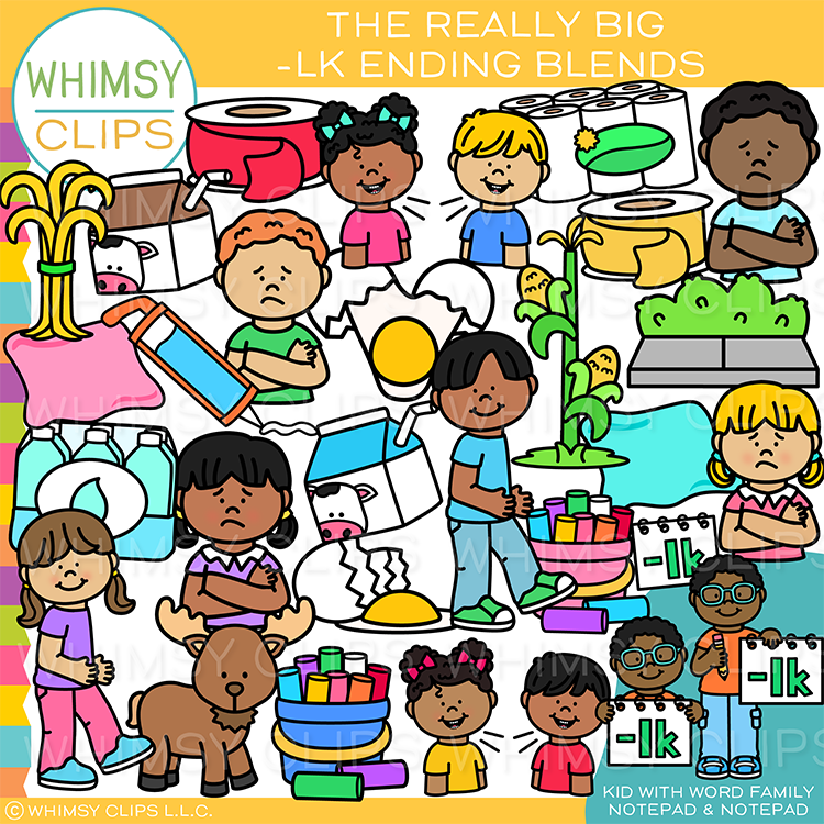 The LK Words Ending Blends clip art set is packed with a variety of images and options and contains 12 LK words. This set is part of The Really, Really Big Ending Blends Bundle.